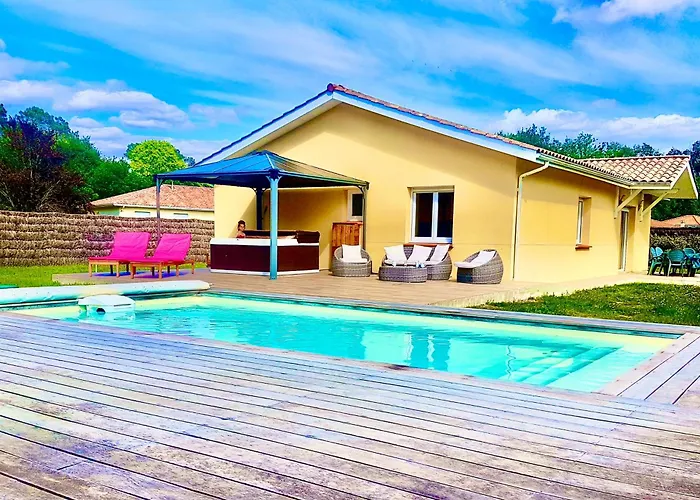 عند الإقامة في Villa Oceane & Jacuzzi Et Piscine Chauffee Sainte-Eulalie-en-Born المكونة من 2 غرفة نوم، يمكن للضيوف زيارة Etang d'Aureilhan على بعد 3 كم. في هذه الفيلا المكونة من 2 حمام، توفّر الشرفة إطلالات على المسبح، بالإضافة إلى المسبح.